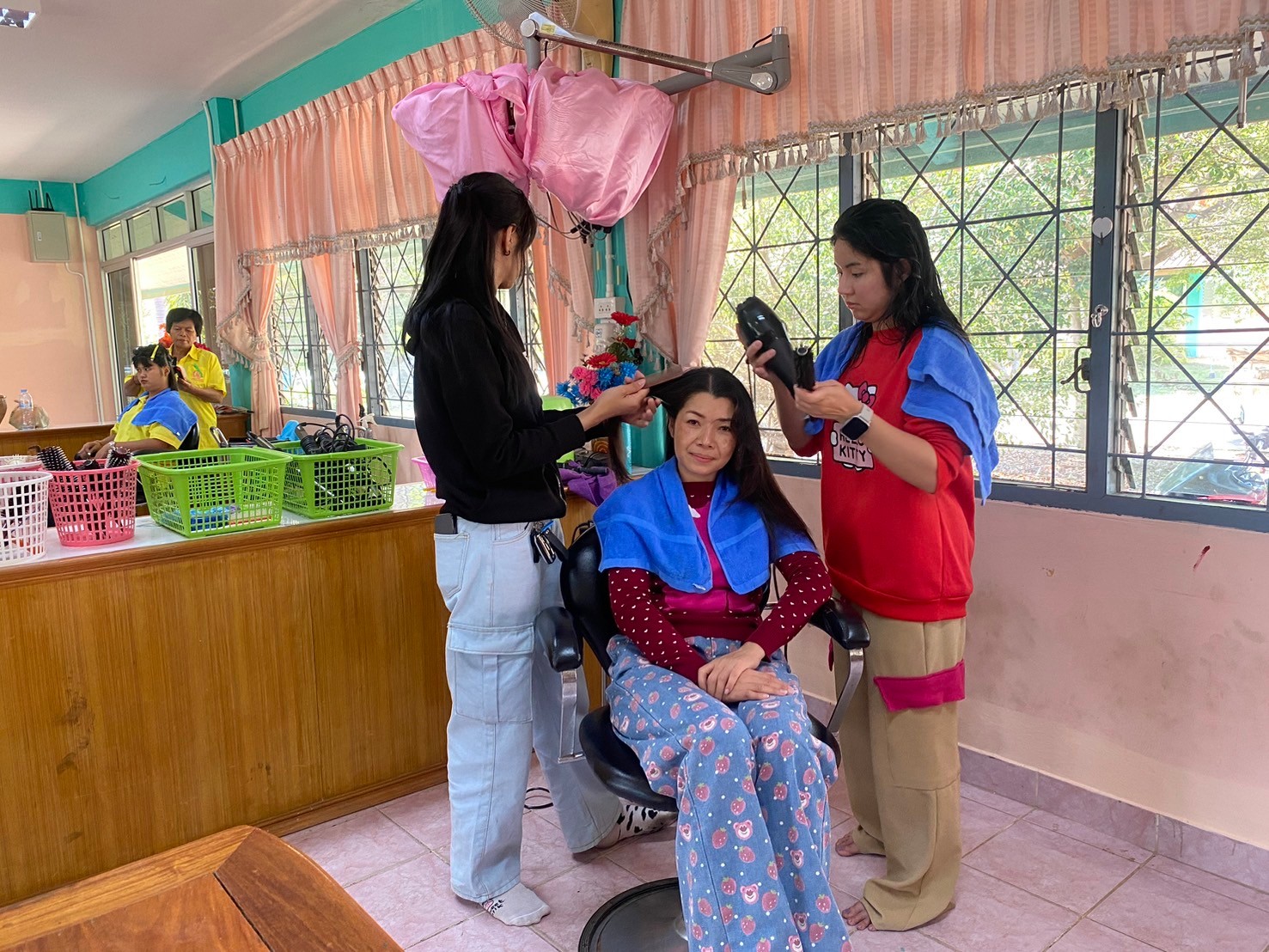 วันที่ 23 ธันวาคม 2567 นางสาวจุรีพร ภิบาลจันทร์ ผู้อำนวยการศูนย์เรียนรู้การพัฒนาสตรีและครอบครัวภาคตะวันออกเฉียงเหนือ จังหวัดศรีสะเกษ มอบหมายให้กลุ่มส่งเสริมการเรียนรู้และพัฒนาอาชีพ ดำเนินการฝึกอบรมอาชีพ หลักสูตร ช่างแต่งผมสตรี (หลักสูตร 3 เดือน) ซึ่งศูนย์ฯได้ดำเนินการฝึกอบรมโดยได้เรียนรู้และฝึกปฏิบัติจริง เรื่อง การสระผม การไดร์ รีด การม้วนแกนทรงต่างๆ ณ แผนกเสริมสวยสตรี ศูนย์เรียนรู้การพัฒนาสตรีและครอบครัวภาคตะวันออกเฉียงเหนือ จังหวัดศรีสะเกษ