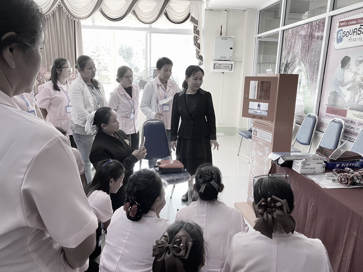 วันศุกร์ ที่ 28 พฤศจิกายน 2568 นางสาวจุรีพร ภิบาลจันทร์ ผู้อำนวยการศูนย์เรียนรู้การพัฒนาสตรีและครอบครัวภาคตะวันออกเฉียงเหนือ จังหวัดศรีสะเกษ มอบหมายให้กลุ่มส่งเสริมการเรียนรู้และพัฒนาอาชีพ ดำเนินการฝึกอบรมอาชีพ “หลักสูตรผู้ดูแลผู้สูงอายุ 420 ชั่วโมง รุ่นที่ 3 ประจำปีงบประมาณ พ.ศ. 2569 (หลักสูตร 4 เดือน) ซึ่งได้ดำเนินการฝึกอบรม เรื่อง การช่วยเหลือผู้ป่วย ด้วยการใช้เครื่องกระตุกหัวใจด้วยไฟฟ้าชนิดอัตโนมัติ (AED) และภาวะแทรกซ้อนที่เกิดอันตราย โดย นางภักดิ์ พิกุลแก้ว พยาบาลวิชาชีพชำนาญการ โรงพยาบาลศรีสะเกษ ณ อาคารกันเกรา ศูนย์เรียนรู้การพัฒนาสตรีและครอบครัว ภาคตะวันออกเฉียงเหนือ จังหวัดศรีสะเกษ