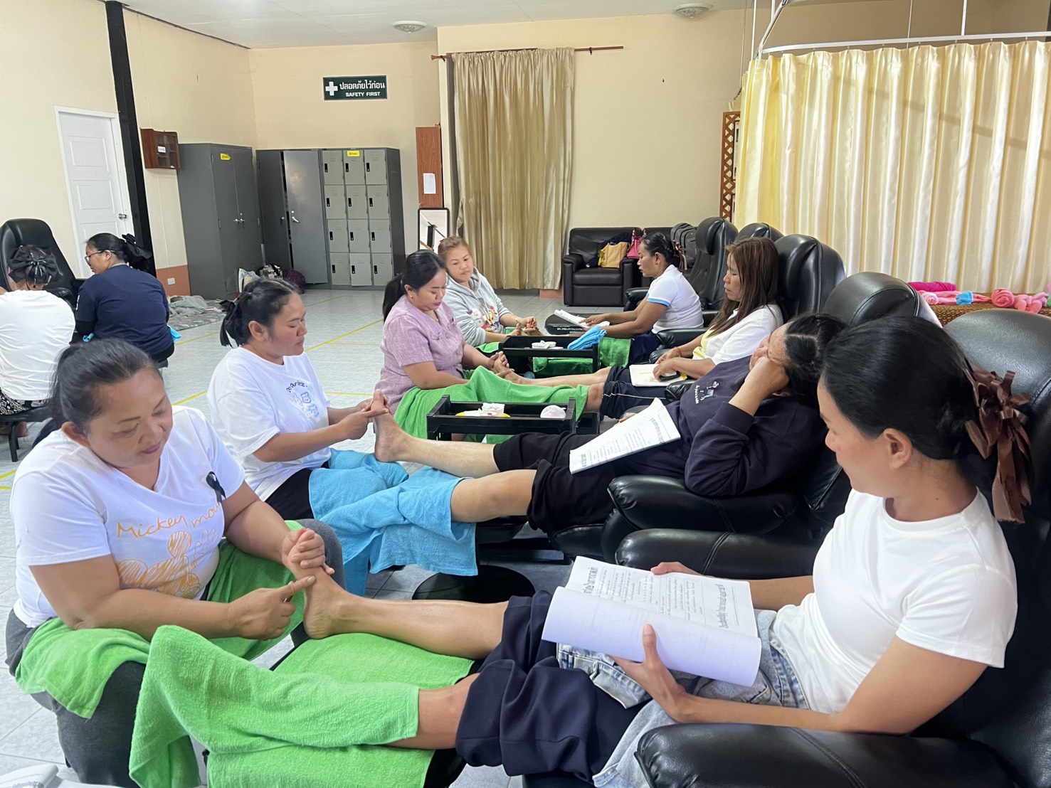 วันจันทร์ ที่ 12 มกราคม 2569 นางสาวจุรีพร ภิบาลจันทร์ ผู้อำนวยการศูนย์เรียนรู้การพัฒนาสตรีและครอบครัวภาคตะวันออกเฉียงเหนือ จังหวัดศรีสะเกษ มอบหมายให้กลุ่มส่งเสริมการเรียนรู้และพัฒนาอาชีพ ดำเนินการฝึกอบรมอาชีพ “หลักสูตรนวดไทยและนวดฝ่าเท้าเพื่อสุขภาพ” รุ่นที่ 1 ประจำปีงบประมาณ พ.ศ. 2569 (หลักสูตร 2 เดือน) ซึ่งได้ดำเนินการฝึกอบรม เรื่อง ทบทวนการนวดฝ่าเท้าทุกขั้นตอน และสอนเทคนิคการนวดฝ่าเท้า ณ แผนกนวดไทยเพื่อสุขภาพ ศูนย์เรียนรู้การพัฒนาสตรีและครอบครัวภาคตะวันออกเฉียงเหนือ จังหวัดศรีสะเกษ