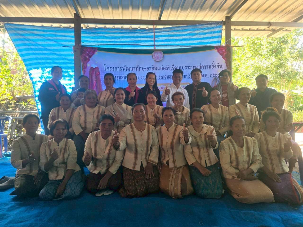 วันอังคาร ที่ 13 มกราคม 2569 นางสาวจุรีพร ภิบาลจันทร์ ผู้อำนวยการศูนย์เรียนรู้การพัฒนาสตรีและครอบครัวภาคตะวันออกเฉียงเหนือ จังหวัดศรีสะเกษ มอบหมายให้เจ้าหน้าที่กลุ่มส่งเสริมการเรียนรู้และพัฒนาอาชีพงานพัฒนาอาชีพในชุมชน ลงพื้นที่เยี่ยมบ้านสอบข้อเท็จจริงผู้ประสบปัญหาทางสังคม เงินอุดหนุนการรวมกลุ่มเพื่อจัดสวัสดิการ และพัฒนาอาชีพ ตามโครงการพัฒนาทักษะอาชีพแก่ครัวเรือนเปราะบางสู่ความยั่งยืน กิจกรรมสนับสนุนการรวมกลุ่มประกอบอาชีพ ประจำปีงบประมาณ 2569 ที่กลุ่มทอผ้ารุ่นใหม่บ้านแขม ตำบลแขม อำเภออุทุมพรพิสัย จังหวัดศรีสะเกษ หลักสูตรทอผ้าไหมมัดหมี่สีธรรมชาติ โดยมี นายสังข์ศิลชัย สังข์ประไพไชยกุล นายกองค์การบริหารส่วนตําบลแขม พร้อมทีมผู้บริหารร่วมลงพื้นที่ในครั้งนี้ด้วย