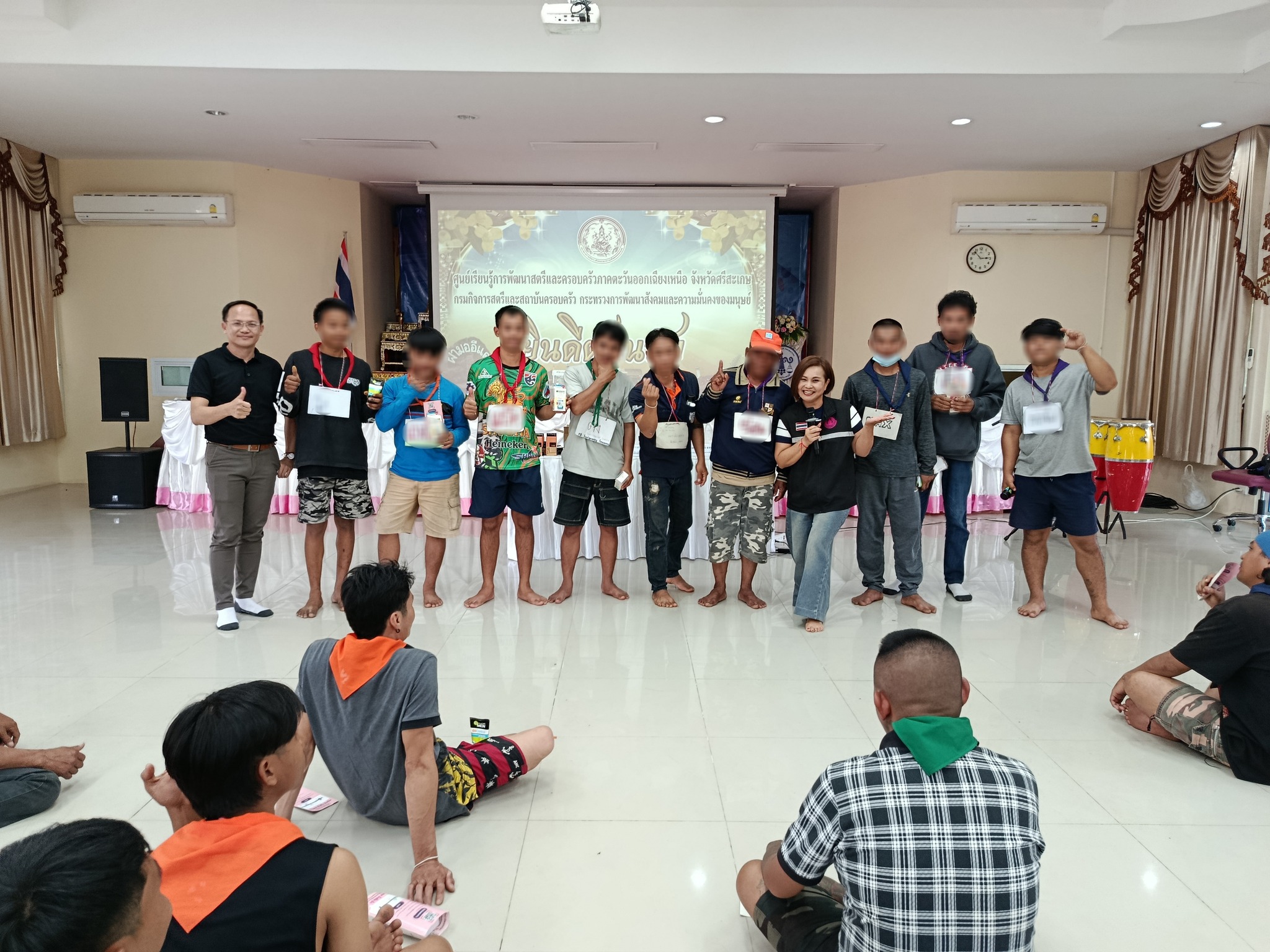 วันเสาร์ ที่ 24 มกราคม 2569 เวลา 14.00 น. นางสาวจุรีพร ภิบาลจันทร์ ผู้อำนวยการศูนย์เรียนรู้การพัฒนาสตรีและครอบครัวภาคตะวันออกเฉียงเหนือ จังหวัดศรีสะเกษ มอบหมายให้ นางกนกวรรณ แสนวงษ์ นักสังคมสงเคราะห์และนายพรอนันต์ จาตูม เจ้าหน้าที่ช่วยปฏิบัติงานด้านการพัฒนาสังคม ประชาสัมพันธ์บทบาทภารกิจของหน่วยงานและประชาสัมพันธ์การรับสมัครฝึกอบรมอาชีพ ให้กับผู้เข้าร่วมโครงการพัฒนาพฤตินิสัยผู้ถูกคุมความประพฤติ ระยะเวลา 15 วัน " ค่าย รู้...รัก (Sense and Love) " ซึ่งเป็นผู้ถูกคุมความประพฤติ ในคดียาเสพติดที่อยู่ในความดูแลของสำนักงานคุมประพฤติจังหวัดศรีสะเกษ จำนวน 42 คน และสำนักงานคุมประพฤติจังหวัดศรีสะเกษ สาขากันทรลักษ์ จำนวน 8 คน รวม 50 คน ณ อาคารอเนกประสงค์ ศูนย์การเรียนรู้พัฒนาสตรีและครอบครัวภาคตะวันออกเฉียงเหนือ จังหวัดศรีสะเกษ