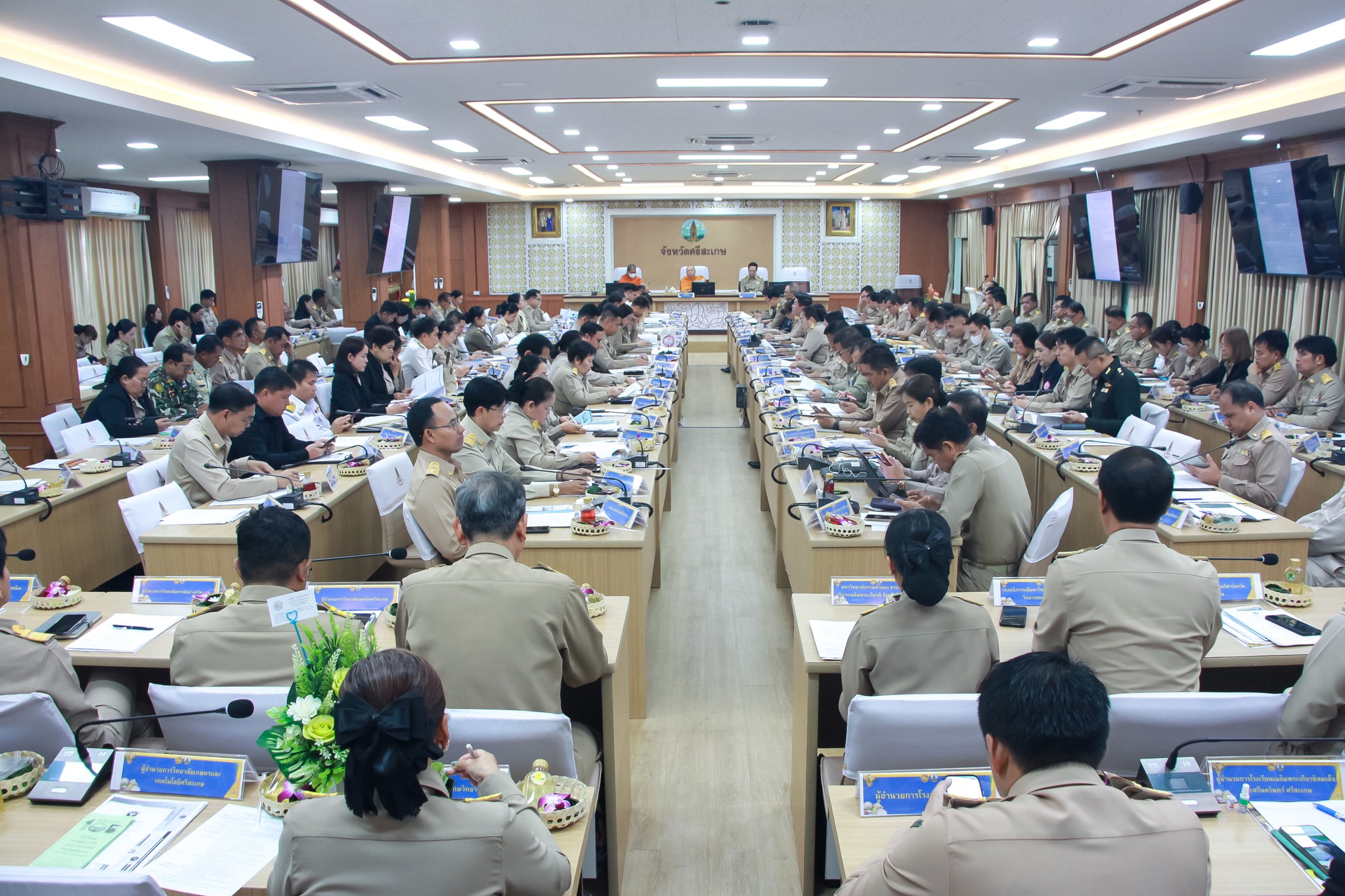 วันพุธ ที่ 28 มกราคม 2569 เวลา 09.30 น. นางสาวจุรีพร ภิบาลจันทร์ ผู้อำนวยการศูนย์เรียนรู้การพัฒนาสตรีและครอบครัวภาคตะวันออกเฉียงเหนือ จังหวัดศรีสะเกษ ร่วมประชุมคณะกรมการจังหวัด หัวหน้าส่วนราชการ และนายอำเภอ ประจำจังหวัดศรีสะเกษ ครั้งที่ 1/2569 เพื่อรับทราบและพิจารณา ผลงานตามนโยบายรัฐบาล/มติคณะรัฐมนตรี (Agenda) ภารกิจสำคัญ ของกระทรวง (Function) วาระการพัฒนา/แก้ไขปัญหา และสถานการณ์ที่สำคัญในพื้นที่ (Area) เรื่องเพื่อทราบโดยเอกสาร และกำหนดการงานสำคัญของจังหวัดในช่วงเดือนกุมภาพันธ์ 2569 โดยมี นายอนุรัตน์ ธรรมประจำจิต ผู้ว่าราชการจังหวัดศรีสะเกษ เป็นประธานในการประชุมฯ ณ ห้องประชุมศรีพฤทเธศวร ชั้น 5 ศาลากลางจังหวัดศรีสะเกษ