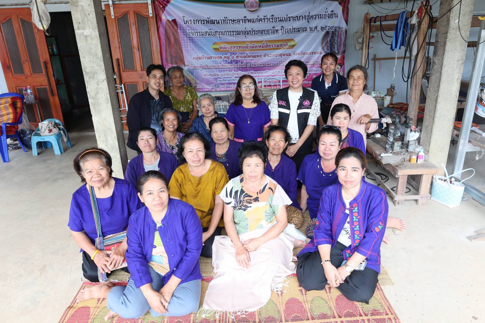 วันพุธ ที่ 4 มีนาคม 2569 นางสาวจุรีพร ภิบาลจันทร์ ผู้อำนวยการศูนย์เรียนรู้การพัฒนาสตรีและครอบครัวภาคตะวันออกเฉียงเหนือ จังหวัดศรีสะเกษ พร้อมเจ้าหน้าที่กลุ่มส่งเสริมการเรียนรู้ และพัฒนาอาชีพ งานพัฒนาอาชีพในชุมชน และกลุ่มแผนงานและวิชาการ ลงพื้นที่ติดตามผล การดำเนินงานกิจกรรมสนับสนุนการรวมกลุุ่มประกอบการอาชีพ ปีงบประมาณ 2569 กลุ่มบ้านตาลกุด หมู่ 8 ตำบลโพนแพง อำเภอธาตุพนม จังหวัดนครพนม หลักสูตรทอผ้ามัดหมี่สีธรรมชาติ เพื่อติดตามผลการดำเนินงาน ประเมินความพึงพอใจและให้คำแนะนำในการอยู่ร่วมกันในกลุ่ม การบริหารจัดการกลุ่ม สมาชิกตระหนักถึงความสำคัญ ความปลอดภัยของการใช้สีธรรมชาติการพัฒนาผลิตภัณฑ์ให้สวยงามเป็นที่ต้องการของตลาด