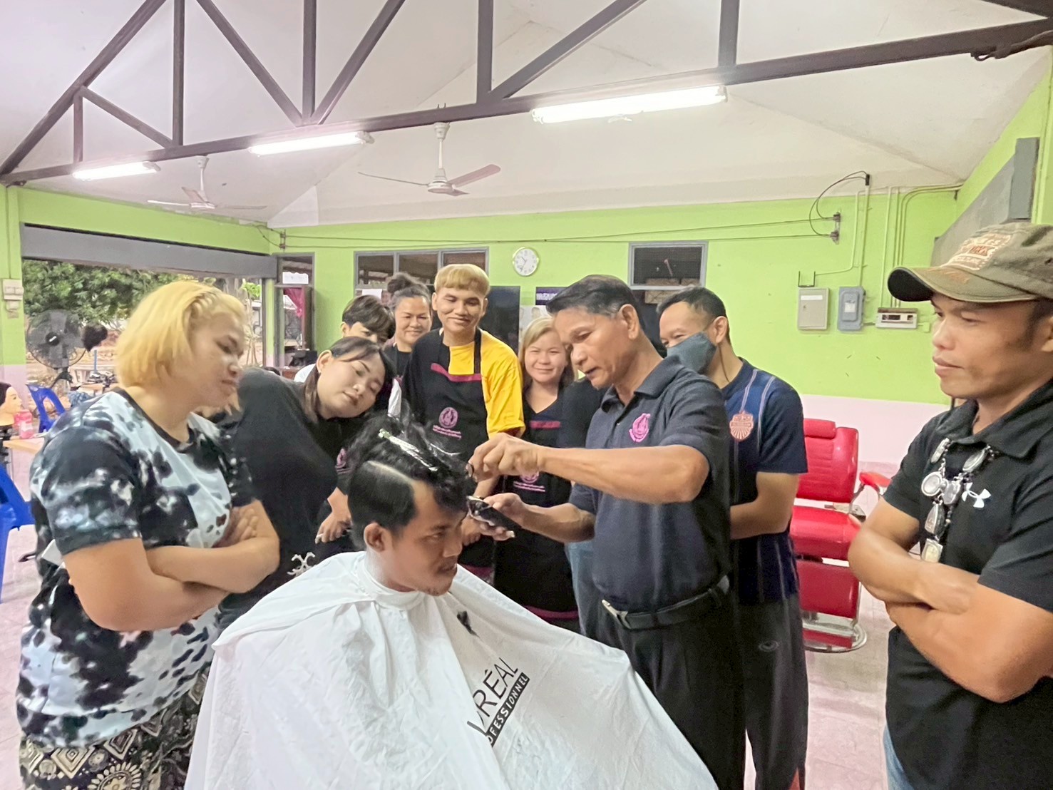 วันพฤหัสบดี ที่ 5 มีนาคม 2569 นางสาวจุรีพร ภิบาลจันทร์ ผู้อำนวยการศูนย์เรียนรู้การพัฒนาสตรีและครอบครัวภาคตะวันออกเฉียงเหนือ จังหวัดศรีสะเกษ มอบหมายให้กลุ่มส่งเสริมการเรียนรู้และพัฒนาอาชีพ ดำเนินการฝึกอบรมอาชีพ “หลักสูตรตัดผมชายและการทำสีผม” (หลักสูตร 1 เดือน) โครงการฝึกอาชีพเสริมสวยเพื่อพัฒนาคุณภาพชีวิต (Beauty for a Better Life) ประจำปีงบประมาณ พ.ศ. 2569 ซึ่งได้ดำเนินการฝึกอบรมอาชีพ เรื่อง การใช้กรรไกรซอย กรรไกรตัดกับหัวหุ่น และการสอนตัดผมแบบรองทรงกลางกับหัวหุ่น ณ แผนกตัดผมชาย ศูนย์เรียนรู้การพัฒนาสตรีและครอบครัวภาคตะวันออกเฉียงเหนือ จังหวัดศรีสะเกษ