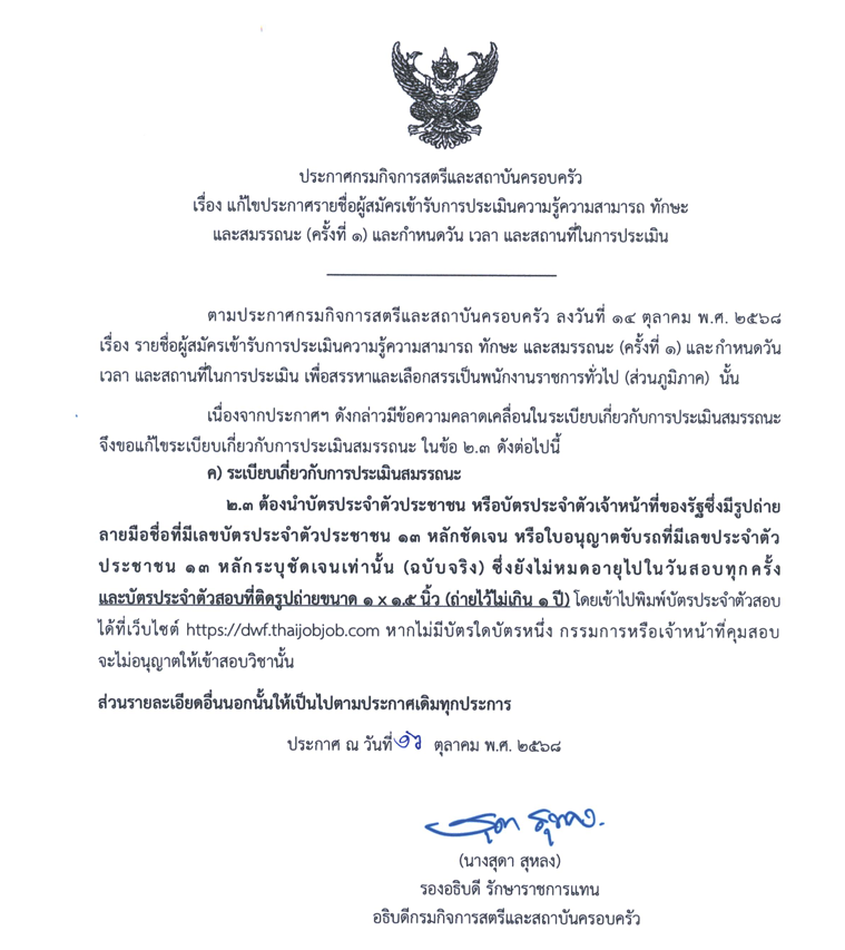 การประกาศรายชื่อผู้สมัครสอบพนักงานราชการทั่วไป (ส่วนภูมิภาค)