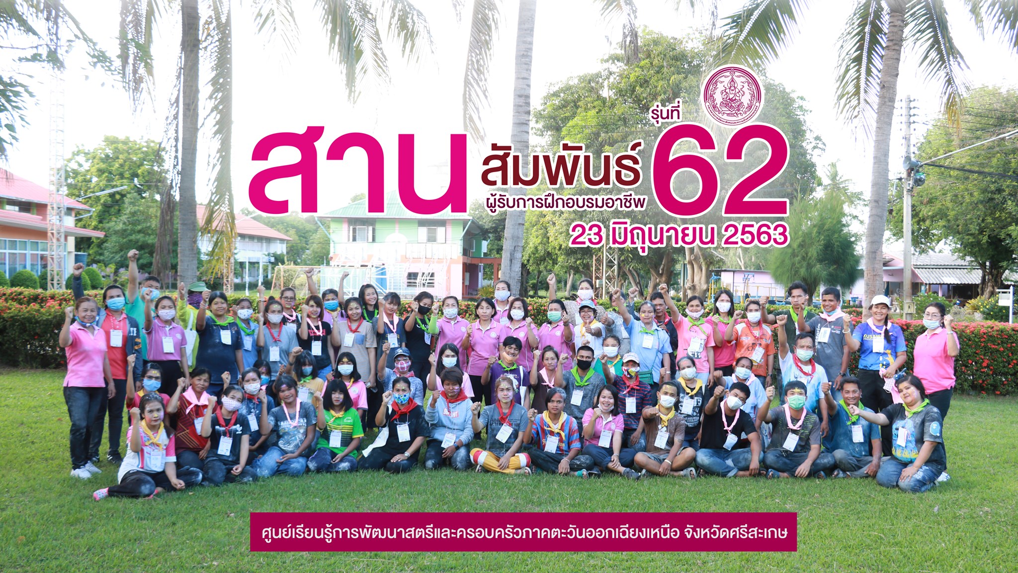วันที่ 23 มิถุนายน 2563 เวลา 09.30 น นางสาวจารุวรินทร์ ธนาชนะสิทธิ์ ผู้อำนวยการศูนย์เรียนรู้การพัฒนาสตรีและครอบครัวภาคตะวันออกเฉียงเหนือ จังหวัดศรีสะเกษ มอบหมายให้นายสงบ เร็วชัย นักพัฒนาสังคมชำนาญการพิเศษ เป็นประธานเปิดกิจกรรมสานสัมพันธ์ผู้เข้ารับการฝึกอาชีพ รุ่นที่ 62 พร้อมให้โอวาทและแนวคิดในการอยู่ร่วมกันตลอดจนแนวทางการฝึกอาชีพเพื่อส่งเสริมให้สถาบันครอบครัวเข้มแข็งนำไปสู่ความสำเร็จในชีวิตต่อไป ณ อาคารอเนกประสงค์ ศูนย์เรียนรู้การพัฒนาสตรีและครอบครัวภาคตะวันออกเฉียงเหนือ จังหวัดศรีสะเกษ กิจกรรมสานสัมพันธ์ผู้เข้ารับการฝึกอาชีพ เป็นกิจกรรมที่เสริมสร้างความสัมพันธ์อันดีระหว่างผู้รับการฝึกอบรมอาชีพ สร้างความรัก ความสามัคคีในหมู่คณะ โดยมีการจัดกิจกรรมกลุ่มสัมพันธ์ต่าง ๆ กิจกรรมฐานเรียนรู้ แบ่งออกเป็น 4 ฐานเรียนรู้ ได้แก่