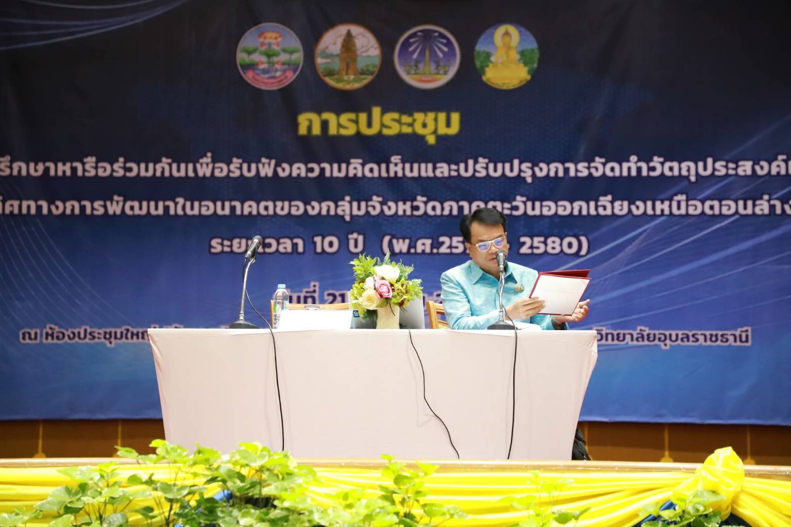 วันอังคารที่ 21 ตุลาคม 2568 เวลา 08.30 น. นางสาวจุรีพร ภิบาลจันทร์ ผู้อำนวยการศูนย์เรียนรู้การพัฒนาสตรีและครอบครัว ภาคตะวันออกเฉียงเหนือ จังหวัดศรีสะเกษ มอบหมายให้กลุ่มแผนงานและวิชาการ เข้าร่วมประชุมปรึกษาหารือร่วมกัน เพื่อรับฟังความคิดเห็น และปรับปรุงการจัดทำวัตถุประสงค์และทิศทางการพัฒนาในอนาคต ของกลุ่มจังหวัดภาคตะวันออกเฉียงเหนือตอนล่าง 2 ระยะเวลา 10 ปี (พ.ศ. 2571 ถึง 2580) โดยได้รับเกียรติจาก นายชำนาญ ชื่นตา ผู้ว่าราชการจังหวัดอุบลราชธานีประธานในพิธีเปิด และวิทยากรของสถาบันวิจัยยุทธศาสตร์และประสานความร่วมมือเพื่อพัฒนาภาคตะวันออกเฉียงเหนือ มหาวิทยาลัยขอนแก่น โดยมีหัวหน้าส่วนราชการ ผู้แทนหน่วยงานภาครัฐ ภาคเอกชน 4 จังหวัดกลุ่มภาคตะวันออกเฉียงเหนือตอนล่าง 2 อุบลราชธานี,ศรีสะเกษ,อำนาจเจริญ และจังหวัดยโสธร ) ณ ห้องประชุมใหญ่ (กันเกรา) อาคารเฉลิมพระเกียรติ 7 รอบพระชนมพรรษา มหาวิทยาลัยอุบลราชธานี