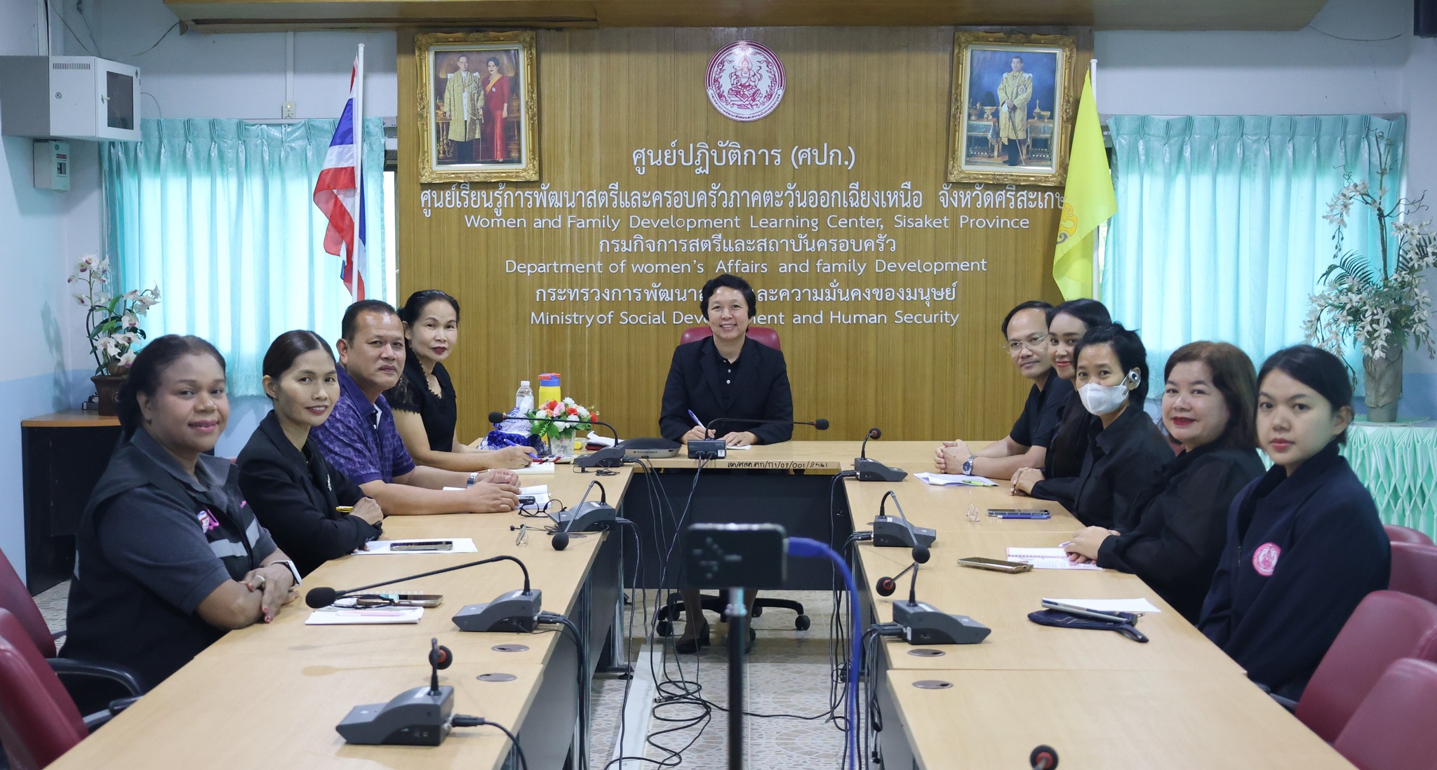 วันศุกร์ ที่ 7 พฤศจิกายน 2568 เวลา 13.30 น. นางสาวจุรีพร ภิบาลจันทร์ ผู้อำนวยการศูนย์เรียนรู้การพัฒนาสตรีและครอบครัวภาคตะวันออกเฉียงเหนือ จังหวัดศรีสะเกษ พร้อมด้วยข้าราชการและเจ้าหน้าที่ ประชุมหารือความร่วมมือโครงการพัฒนาพฤตินิสัยผู้ถูกคุมความประพฤติ ระยะเวลา 15 วัน ประจำปีงบประมาณ พ.ศ. 2569 “ค่าย รู้..รัก (Sense and Love)”ร่วมกับสำนักงานคุมประพฤติ จังหวัดศรีสะเกษ ณ ห้องประชุม ศปก. ศูนย์เรียนรู้การพัฒนาสตรีและครอบครัวภาคตะวันออกเฉียงเหนือ จังหวัดศรีสะเกษ