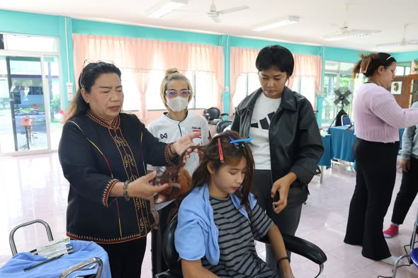 วันอังคาร ที่ 25 พฤศจิกายน 2568 นางสาวจุรีพร ภิบาลจันทร์ ผู้อำนวยการศูนย์เรียนรู้การพัฒนาสตรีและครอบครัว ภาคตะวันออกเฉียงเหนือ จังหวัดศรีสะเกษ มอบหมายให้กลุ่มส่งเสริมการเรียนรู้และพัฒนาอาชีพ ดำเนินการฝึกอบรมอาชีพ “หลักสูตรเสริมสวยสตรี” รุ่นที่ 1 ประจำปีงบประมาณ พ.ศ. 2569 (หลักสูตร 3 เดือน) ซึ่งได้ดำเนินการฝึกอบรม เรื่อง การสระผม การไดร์รีด ไดร์ผมสะบัดปลาย ทรงฟาร่าห์ การแบ่งผม และการนวดหนังศรีษะ ณ แผนกเสริมสวยสตรี ศูนย์เรียนรู้การพัฒนาสตรีและครอบครัวภาคตะวันออกเฉียงเหนือ จังหวัดศรีสะเกษ