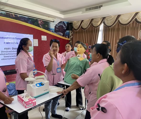 วันพุธ ที่ 26 พฤศจิกายน 2568 นางสาวจุรีพร ภิบาลจันทร์ ผู้อำนวยการศูนย์เรียนรู้การพัฒนาสตรีและครอบครัวภาคตะวันออกเฉียงเหนือ จังหวัดศรีสะเกษ มอบหมายให้กลุ่มส่งเสริมการเรียนรู้และพัฒนาอาชีพ ดำเนินการฝึกอบรมอาชีพ “หลักสูตรผู้ดูแลผู้สูงอายุ 420 ชั่วโมง รุ่นที่ 3 ประจำปีงบประมาณ พ.ศ. 2569 (หลักสูตร 4 เดือน) ซึ่งได้ดำเนินการฝึกอบรม เรื่อง การประเมินภาวะวิกฤต การช่วยชีวิต การปฐมพยาบาล การฟื้นฟูสมรรถภาพ และกิจกรรมทางกาย โดย นางภักดิ์ พิกุลแก้ว พยาบาลวิชาชีพชำนาญการ โรงพยาบาลศรีสะเกษ และ นางสาวตรูตา มีธรรม นักกายภาพบำบัดเชี่ยวชาญ ดำเนินการฝึกอบรม ณ อาคารกันเกรา ศูนย์เรียนรู้การพัฒนาสตรีและครอบครัว ภาคตะวันออกเฉียงเหนือ จังหวัดศรีสะเกษ