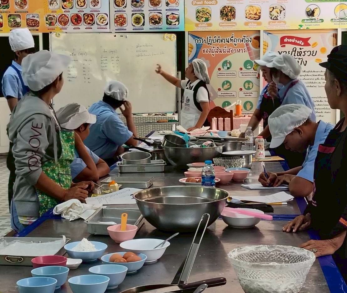 วันพฤหัสบดี ที่ 27 พฤศจิกายน 2568 นางสาวจุรีพร ภิบาลจันทร์ ผู้อำนวยการศูนย์เรียนรู้การพัฒนาสตรีและครอบครัวภาคตะวันออกเฉียงเหนือ จังหวัดศรีสะเกษ มอบหมายให้กลุ่มส่งเสริมการเรียนรู้และพัฒนาอาชีพ ดำเนินการฝึกอบรมอาชีพ “หลักสูตรผู้ประกอบอาหารไทย” รุ่นที่ 1 ประจำปีงบประมาณ พ.ศ. 2569 (หลักสูตร 3 เดือน) ซึ่งได้ดำเนินการฝึกอบรม การทำเค้กกล้วยหอม กาแฟสด และลาเต้เย็น โดยแบ่งกลุ่มฝึกปฏิบัติ และส่งผลงาน รวมทั้งวิธีการคิดคำนวณต้นทุน ณ อาหารและโภชนาการ ศูนย์เรียนรู้การพัฒนาสตรีและครอบครัว ภาคตะวันออกเฉียงเหนือ จังหวัดศรีสะเกษ