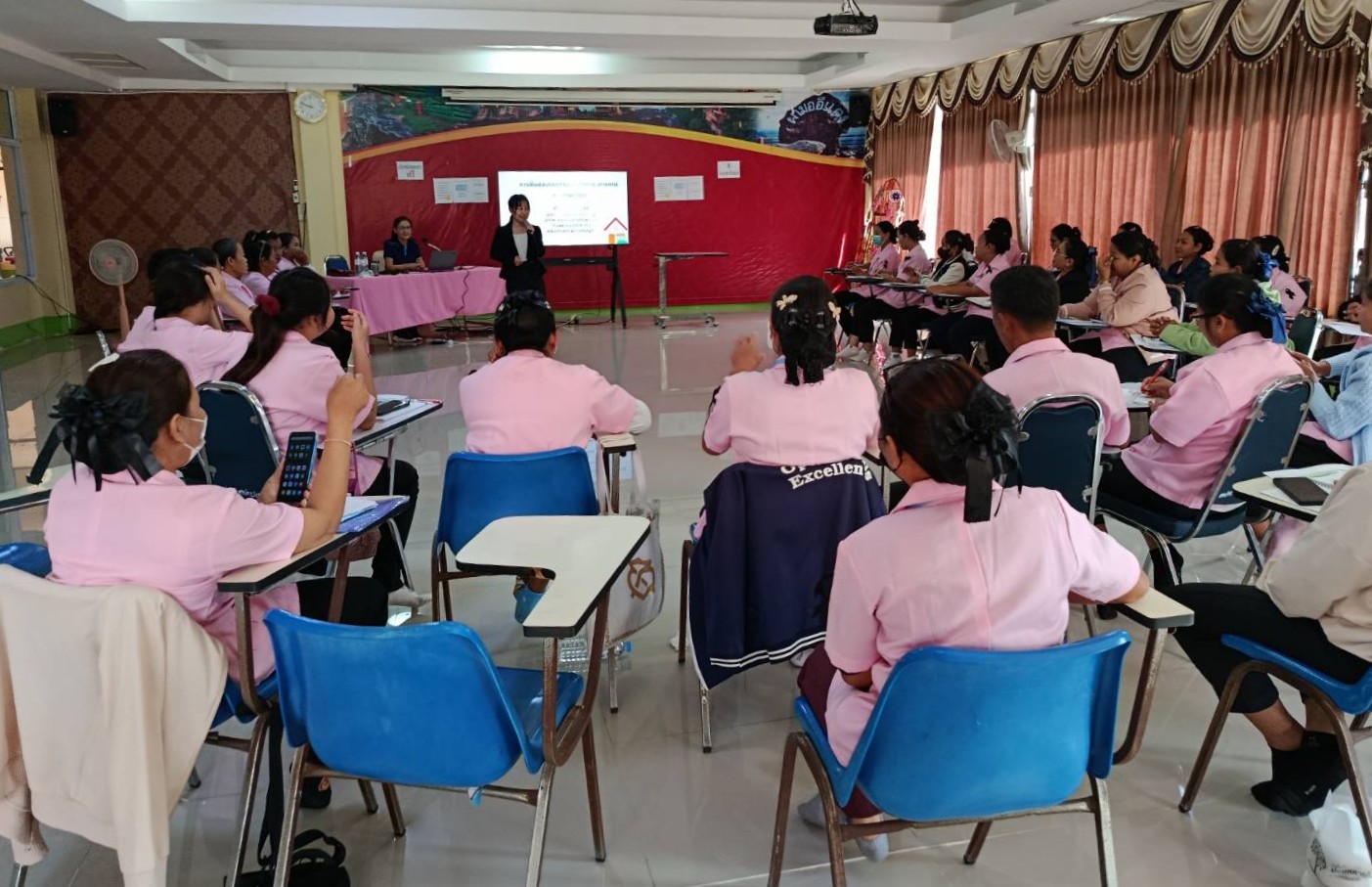 วันพฤหัสบดี ที่ 27 พฤศจิกายน 2568 นางสาวจุรีพร ภิบาลจันทร์ ผู้อำนวยการศูนย์เรียนรู้การพัฒนาสตรีและครอบครัวภาคตะวันออกเฉียงเหนือ จังหวัดศรีสะเกษ มอบหมายให้กลุ่มส่งเสริมการเรียนรู้และพัฒนาอาชีพดำเนินการฝึกอบรมอาชีพ “หลักสูตรผู้ดูแลผู้สูงอายุ 420 ชั่วโมง รุ่นที่ 3 ประจำปีงบประมาณ พ.ศ. 2569 (หลักสูตร 4 เดือน) ซึ่งได้ดำเนินการฝึกอบรม เรื่องการประเมินภาวะวิกฤต การปฐมพยาบาลเบื้องต้น และการช่วยเหลือผู้ป่วยด้วยวิธีการปั้มหัวใจ (CPR) โดย นางภักดิ์ พิกุลแก้ว พยาบาลวิชาชีพชำนาญการ โรงพยาบาลศรีสะเกษ ณ อาคารกันเกรา ศูนย์เรียนรู้การพัฒนาสตรีและครอบครัว ภาคตะวันออกเฉียงเหนือ จังหวัดศรีสะเกษ