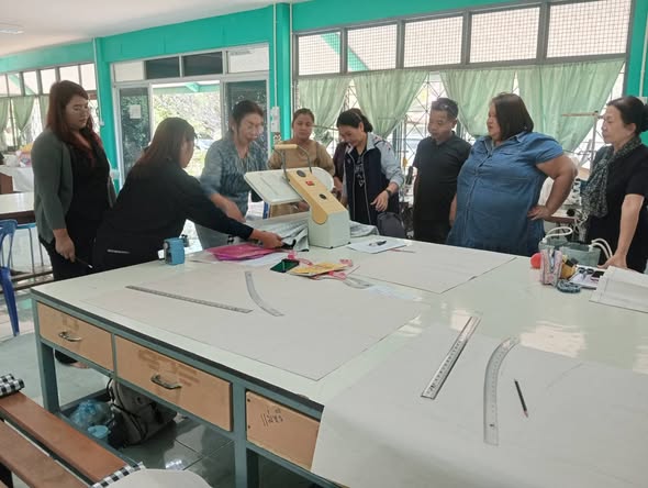 วันศุกร์ ที่ 28 พฤศจิกายน 2568 นางสาวจุรีพร ภิบาลจันทร์ ผู้อำนวยการศูนย์เรียนรู้การพัฒนาสตรีและครอบครัวภาคตะวันออกเฉียงเหนือ จังหวัดศรีสะเกษ มอบหมายให้กลุ่มส่งเสริมการเรียนรู้และพัฒนาอาชีพ ดำเนินการฝึกอบรมอาชีพ “หลักสูตรตัดเย็บสื้อผ้า” รุ่นที่ 1 ประจำปีงบประมาณ พ.ศ. 2569 (หลักสูตร 3 เดือน) ซึ่งได้ดำเนินการฝึกอบรม เรื่อง การปรับแบบให้เหมาะสมกับรูปร่าง การสร้างแบบตัดขนาดตัวเอง การแยกแบบ และการเผื่อเย็บกระโปรงทรงตรง การอัดผ้ากาว ณ ตัดเย็บเสื้อผ้า ศูนย์เรียนรู้การพัฒนาสตรีและครอบครัวภาคตะวันออกเฉียงเหนือ จังหวัดศรีสะเกษ