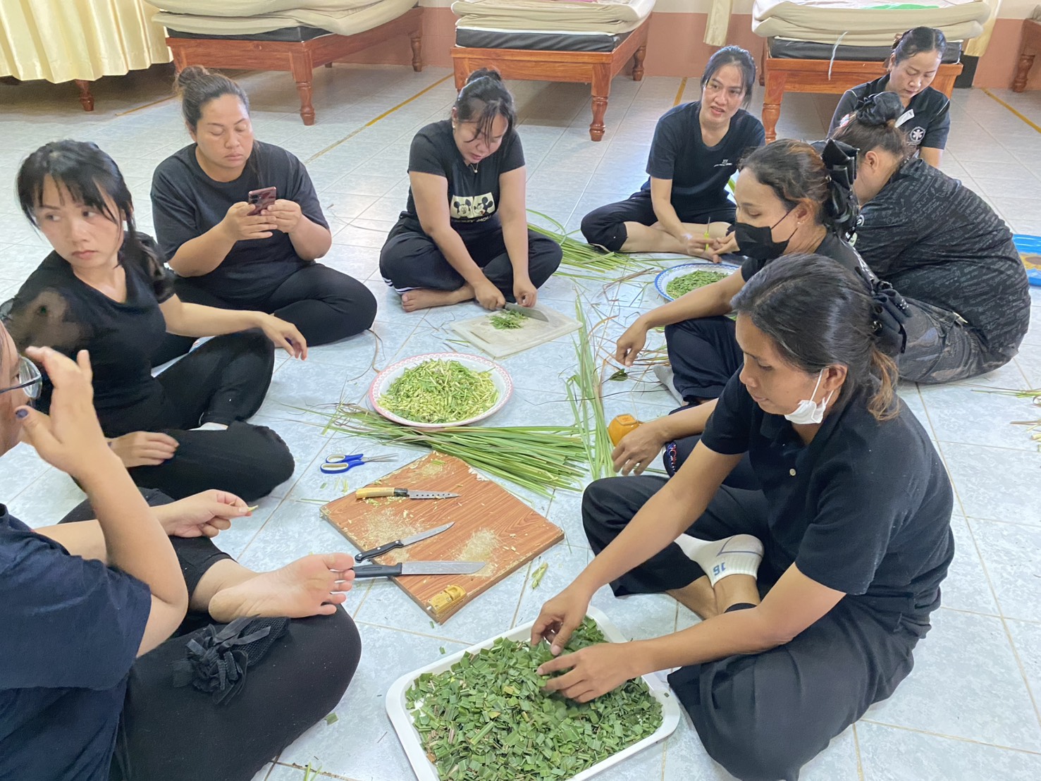 วันอังคาร ที่ 2 ธันวาคม 2568 นางสาวจุรีพร ภิบาลจันทร์ ผู้อำนวยการศูนย์เรียนรู้การพัฒนาสตรีและครอบครัวภาคตะวันออกเฉียงเหนือ จังหวัดศรีสะเกษ มอบหมายให้กลุ่มส่งเสริมการเรียนรู้และพัฒนาอาชีพ ดำเนินการฝึกอบรมอาชีพ “หลักสูตรนวดไทยและนวดฝ่าเท้าเพื่อสุขภาพ” รุ่นที่ 1 ประจำปีงบประมาณ พ.ศ. 2569 (หลักสูตร 2 เดือน) ซึ่งได้ดำเนินการฝึกอบรม เรื่อง การทบทวนท่านวด ที่ 1 -6 และเรียน ท่านวดที่ 7 และเตรียมสมุนไพรในการทำลูกประคบ ณ แผนกนวดไทยเพื่อสุขภาพ ศูนย์เรียนรู้การพัฒนาสตรีและครอบครัวภาคตะวันออกเฉียงเหนือ จังหวัดศรีสะเกษ
