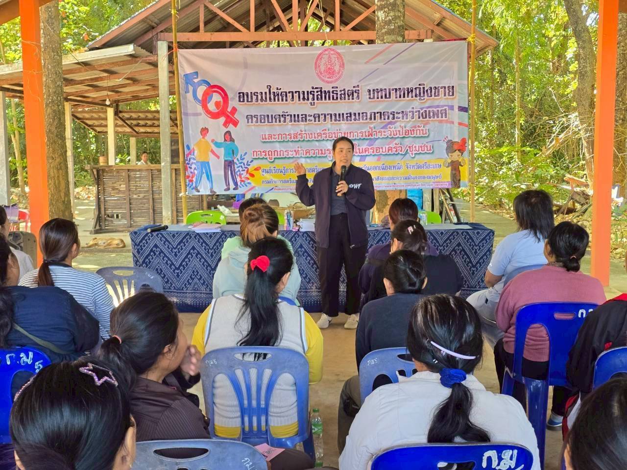 วันจันทร์ ที่ 15 ธันวาคม 2568 นางสาวจุรีพร ภิบาลจันทร์ ผู้อำนวยการศูนย์เรียนรู้การพัฒนาสตรีและครอบครัวภาคตะวันออกเฉียงเหนือ จังหวัดศรีสะเกษ มอบหมายให้ข้าราชการและเจ้าหน้าที่ กลุ่มส่งเสริมการเรียนรู้และพัฒนาอาชีพ ลงพื้นที่อบรมสิทธิสตรี บทบาทหญิงชาย ครอบครัว และความเสมอภาคระหว่างเพศ การสร้างเครือข่ายเฝ้าระวัง ป้องกันการถูกกระทำความรุนแรง ในครอบครัว/ชุมชน แก่กลุ่มอาชีพตามโครงการพัฒนาทักษะอาชีพแก่ครัวเรือนเปราะบาง สู่ความยั่งยืน กิจกรรมสร้างชีวิตใหม่ให้แก่สตรีและครอบครัว ประจำปีงบประมาณ 2569 ณ กลุ่มบ้านดอนมงคล หมู่ 5 ตำบลบ้านข่า อำเภอศรีสงคราม จังหวัดนครพนม จำนวน 31 คน