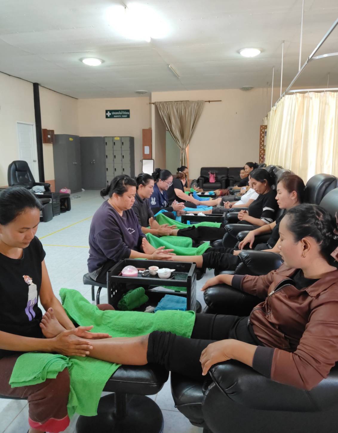วันพฤหัสบดี ที่ 8 มกราคม 2569 นางสาวจุรีพร ภิบาลจันทร์ ผู้อำนวยการศูนย์เรียนรู้การพัฒนาสตรีและครอบครัวภาคตะวันออกเฉียงเหนือ จังหวัดศรีสะเกษ มอบหมายให้กลุ่มส่งเสริมการเรียนรู้และพัฒนาอาชีพ ดำเนินการฝึกอบรมอาชีพ “หลักสูตรนวดไทยและนวดฝ่าเท้าเพื่อสุขภาพ” รุ่นที่ 1 ประจำปีงบประมาณ พ.ศ. 2569 (หลักสูตร 2 เดือน) ซึ่งได้ดำเนินการฝึกอบรม เรื่อง ทบทวนท่านวดฝ่าเท้า ขั้นตอนที่ 1-6 และเตรียมท่านวดขั้นตอนที่ 7 ณ แผนกนวดไทยเพื่อสุขภาพ ศูนย์เรียนรู้การพัฒนาสตรีและครอบครัวภาคตะวันออกเฉียงเหนือ จังหวัดศรีสะเกษ