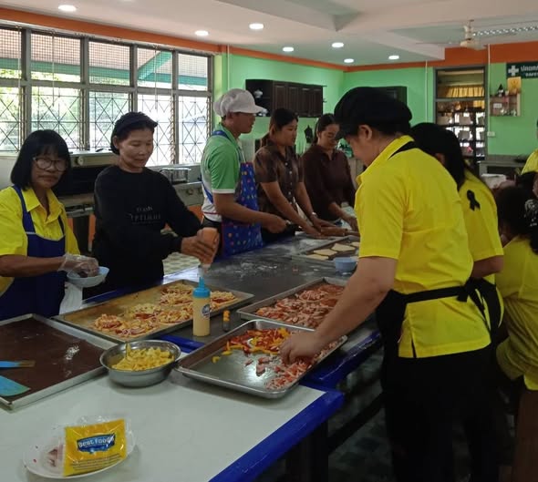 วันพฤหัสบดี ที่ 12 กุมภาพันธ์ 2569 นางสาวจุรีพร ภิบาลจันทร์ ผู้อำนวยการศูนย์เรียนรู้การพัฒนาสตรีและครอบครัวภาคตะวันออกเฉียงเหนือ จังหวัดศรีสะเกษ มอบหมายให้กลุ่มส่งเสริมการเรียนรู้และพัฒนาอาชีพ ดำเนินการฝึกอบรมอาชีพ “หลักสูตรผู้ประกอบอาหารไทย” รุ่นที่ 1 (หลักสูตร 3 เดือน) ประจำปีงบประมาณ พ.ศ. 2569 ซึ่งได้ดำเนินการฝึกอบรมอาชีพ เรื่อง การทำการทำพิชซ่า พายสับปะรด ทบทวนการเรียนการสอนอาหารไทยขนมไทยอาหารว่างเบเกอรี่ ณ อาหารและโภชนาการ ศูนย์เรียนรู้การพัฒนาสตรีและครอบครัวภาคตะวันออกเฉียงเหนือ จังหวัดศรีสะเกษ