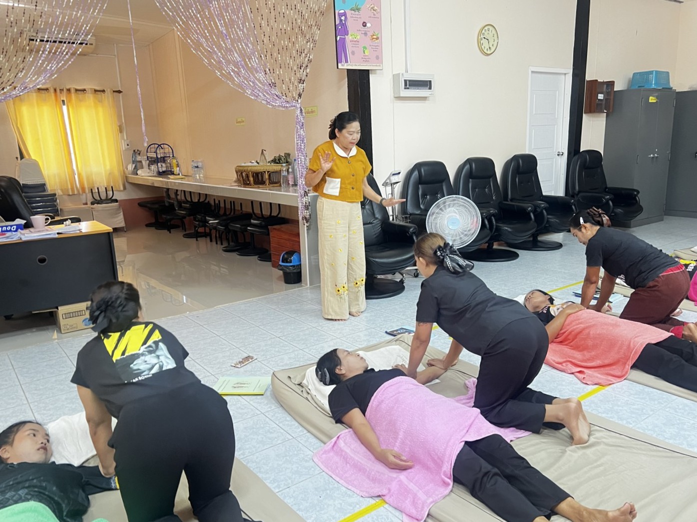 วันอังคาร ที่ 17 กุมภาพันธ์ 2569 นางสาวจุรีพร ภิบาลจันทร์ ผู้อำนวยการศูนย์เรียนรู้การพัฒนาสตรีและครอบครัวภาคตะวันออกเฉียงเหนือ จังหวัดศรีสะเกษ มอบหมายให้กลุ่มส่งเสริมการเรียนรู้และพัฒนาอาชีพ ดำเนินการฝึกอบรมอาชีพ “หลักสูตรนวดไทยและนวดฝ่าเท้าเพื่อสุขภาพ” รุ่นที่ 2 ประจำปีงบประมาณ พ.ศ. 2569 (หลักสูตร 2 เดือน) ซึ่งได้ดำเนินการฝึกอบรม เรื่อง ประวัติความเป็นมาของการนวดไทย ทฤษฎีการแพทย์แผนไทย