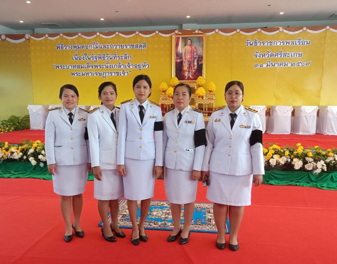วันอังคาร ที่ 31 มีนาคม 2569 เวลา 07.30 น. นางสาวจุรีพร ภิบาลจันทร์ ผู้อำนวยการศูนย์เรียนรู้การพัฒนาสตรีและครอบครัวภาคตะวันออกเฉียงเหนือ จังหวัดศรีสะเกษ มอบหมายให้ข้าราชการและเจ้าหน้าที่ ร่วมรัฐพิธีวันที่ระลึก"พระบาทสมเด็จพระนั่งเกล้าเจ้าอยู่หัวพระมหาเจษฎา และ "วันข้าราชการพลเรือน" ประจำปี พ.ศ.2569 เพื่อแสดงความจงรักภักดีและน้อมรำลึกถึงพระมหากรุณาธิคุณอันหาที่สุดมิได้ที่ทรงมีต่อพสกนิกรชาวไทย โดยมี นายอนุรัตน์ ธรรมประจำจิต ผู้ว่าราชการจังหวัดศรีสะเกษ ประธานพิธีฯ ณ ห้องประชุมชั้น 5 อาคารเทพา ศาลากลางจังหวัดศรีสะเกษ